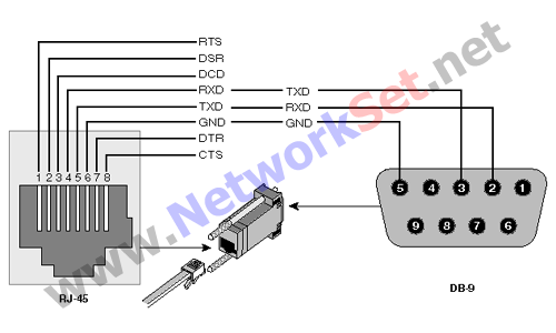 بالنسبة لطريقة التوصيل فسوف أشرحها بالصور التالية ونبدأ مع صورة للكابل المحصص للكونسول وهو عبارة عن RJ-45-to-DB9