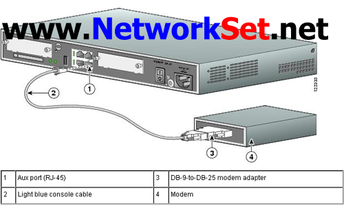 بالنسبة للـAuxiliary Port هذه صورة توضح كيفية ربطه مع مودم خارجي وتبين نوع الكوابل والمحولات المطلوبة وهو بالعادة يتصل مع المودم من خلال DB25 أو من خلال Rollover Cable