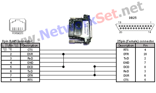 وهذه صورة توضيحية لنوزيع الأسلاك بين RJ-45 و DB25