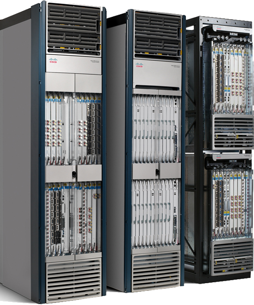 فعندما أعلنت سيسكو أن أستطاعت هذا الجهاز تصل إلى 320 تيرا بت وربطتها ببعض الأمثلة الخيالية التى جذبت الجميع للوقوع في هذه الخدعة التى تهدف إلى إبعاد القارئين عن الحقيقة الأساسية وهي أن هذه الأستطاعة لاتأتي من جهاز مركزي واحد فكما هو واضح عندكم من الصورة أن هذا الجهاز عبارة عن multichassis ومقسم إلى 3 أقسام قامت سيسكو بجمع أمكانيات كل واحد فيهم لتعلن عن هذا الرقم الخيالي والذي بدوره يقودنا إلى أستنتاج أن قدرة هذا الجهاز بنيت على أساس حجم كبير , لاحظ الطول والعرض والأرتفاع .