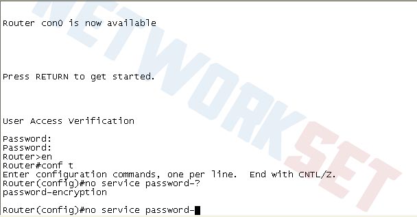 Router(config)#no service password-recovery